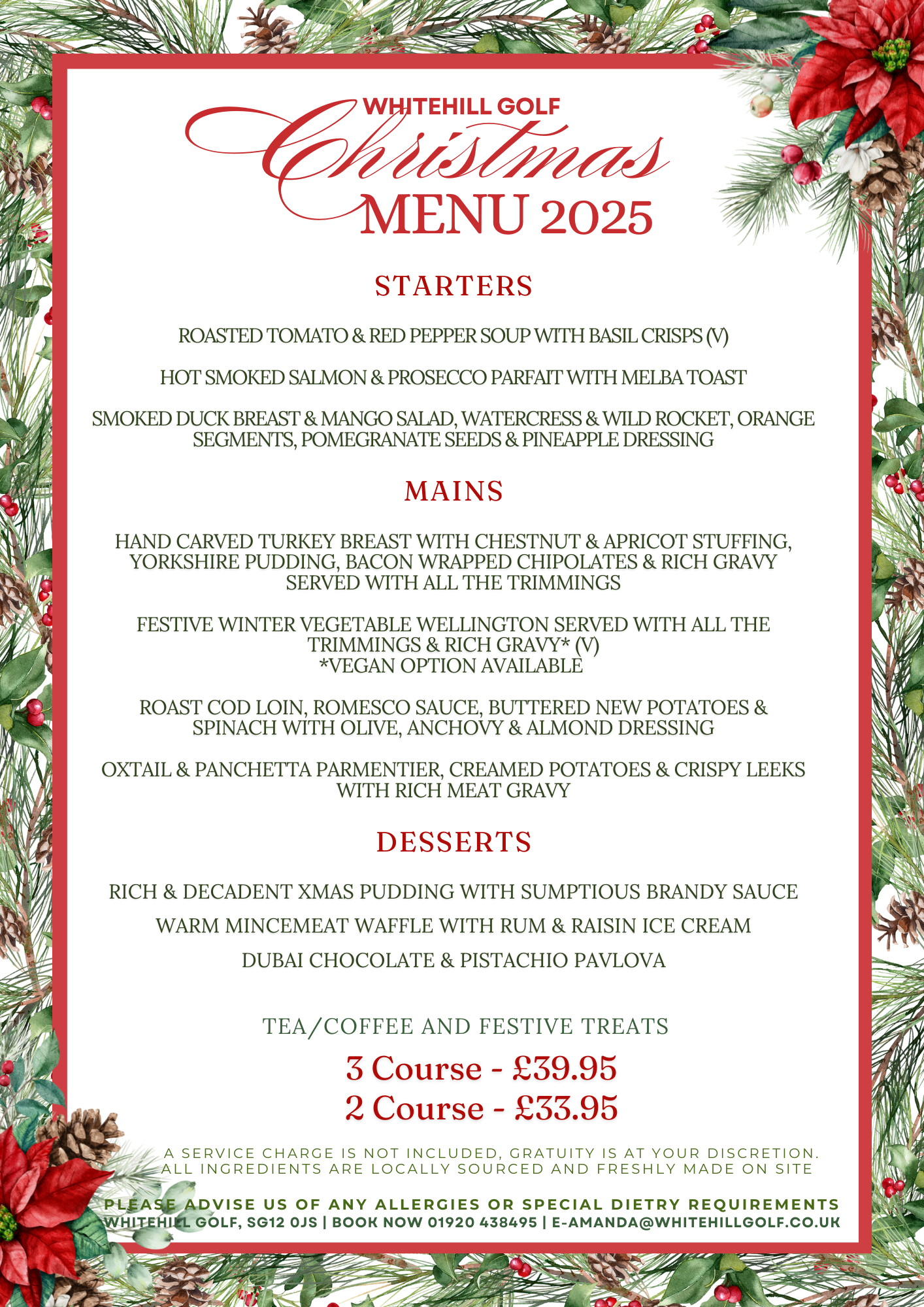 WHITEHILL CHRISTMAS MENU 2025